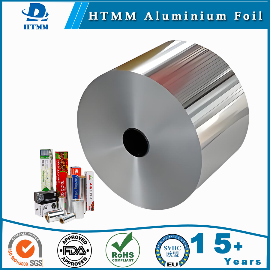 Thin aluminum foil of 6-9 microns used for delicate chocolate packaging is also a best-selling product on the market. Aluminum foil for yogurt lids, 28-40 microns thick, is the preferred thickness for manufacturers in the market. HTMM offers customizable widths from 200-1850mm.